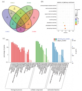 作者對(duì)低溫脅迫(12℃)條件下,對(duì)第0、2、4天水稻花序上3.5-4.5mm的幼穗進(jìn)行取樣, 做 RNA-seq分析 ,分析兩親本在低溫脅迫條件下,差異基因表達(dá)情況。結(jié)合BSA關(guān)聯(lián)分析的定位區(qū)間,發(fā)現(xiàn)候選區(qū)域內(nèi)有50個(gè)差異表達(dá)基因。通過(guò)對(duì)差異表達(dá)基因進(jìn)行GO和KEGG富集功能分析結(jié)合功能富集分析,確定4個(gè)(Os09g0514200、Os09g0516500、Os09g0516600和Os09g0511600)潛在候選基因與耐寒性相關(guān);進(jìn)一步通過(guò)qRT-PCR驗(yàn)證這4個(gè)基因的表達(dá)情況,結(jié)果顯示與轉(zhuǎn)錄組表達(dá)一致。