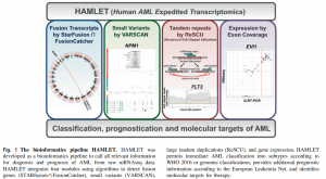 急性髓細(xì)胞白血病(AML)是由基因變異引起的,基因變異也控制著患者的預(yù)后,并指導(dǎo)風(fēng)險(xiǎn)適應(yīng)和靶向治療。急性髓系白血病的遺傳變異在結(jié)構(gòu)上是多樣的,目前通過(guò)不同的診斷分析來(lái)檢測(cè)。本研究旨在建立全轉(zhuǎn)錄組核糖核酸測(cè)序作為AML診斷的單一、全面和靈活的平臺(tái)。我們開(kāi)發(fā)了HAMLET(人類急性髓細(xì)胞白血病快速轉(zhuǎn)錄組學(xué))作為生物信息學(xué)管道,用于同時(shí)檢測(cè)fusion genes、small variants、tandem duplications和gene expression,所有信息都集中在一個(gè)被注釋的、簡(jiǎn)易的輸出文件中。對(duì)100例急性髓系白血病患者進(jìn)行了全轉(zhuǎn)錄組RNA測(cè)序,并通過(guò)reference assays和targeted resequencing驗(yàn)證了HAMLET結(jié)果。數(shù)據(jù)顯示,HAMLET z確地檢測(cè)到所有融合基因和過(guò)表達(dá)EVI1與3q26突變無(wú)關(guān)。此外,AML中經(jīng)常突變的13個(gè)基因的small variants有99.2%的敏感性和100%的特異性,以及FLT3和KMT2A的tandem duplications以100%的靈敏度和97.1%的特異性通過(guò)了新算法檢測(cè)。總之,HAMLET有潛力成為在單一技術(shù)平臺(tái)上提供與AML分類、風(fēng)險(xiǎn)評(píng)估和靶向治療相關(guān)的z確全面的診斷信息的平臺(tái)。