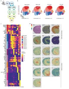 大腦是一個(gè)具有精密組織結(jié)構(gòu)的重要器官。對(duì)于大腦結(jié)構(gòu)-功能的關(guān)系、發(fā)育過(guò)程中大腦皮層以及退行性神經(jīng)疾病領(lǐng)域的研究,空間轉(zhuǎn)錄組可以揭示更多的信息。單細(xì)胞和空間轉(zhuǎn)錄組結(jié)合可以將關(guān)注的細(xì)胞類(lèi)型及亞型√確的錨定到空間位置上,解析不同功能區(qū)域與細(xì)胞類(lèi)型及亞型的關(guān)聯(lián)性。