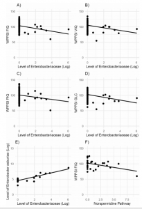 接下來對33個樣本進(jìn)行宏基因組分析,進(jìn)一步描述了微生物組的特征。分析表明腸桿菌科的未知屬與阿氏腸桿菌關(guān)系最密切(圖2E),也與陰溝腸桿菌和居中克呂沃爾氏菌相關(guān)。其中陰溝腸桿菌與WPPSI-III FIQ顯著相關(guān),同時(shí)陰溝腸桿菌和居中克呂沃爾氏菌相關(guān)。其中陰溝腸桿菌與WPPSI-III FIQ顯著相關(guān),同時(shí)陰溝腸桿菌和阿氏腸桿菌腸桿菌與WPPSI-III PIQ相關(guān)。