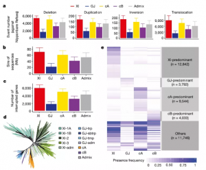 在用于GWAS的標(biāo)記中,最初使用的是SSR標(biāo)記,后來(lái)SNP標(biāo)記成為常用標(biāo)記。但是,研究人員逐漸意識(shí)到基于SNP標(biāo)記的GWAS分析不足以解釋的群體中全部的遺傳變異。并且,隨著測(cè)序技術(shù)的發(fā)展,在人以及諸多動(dòng)植物中發(fā)現(xiàn)了大規(guī)模的SVs [包括拷貝數(shù)變異(CNV)/存在缺失變異(PAV)和易位/倒置(translocations/inversions)]與疾病、馴化及重要農(nóng)藝性狀有關(guān)。本期推文,我們一起來(lái)看一下SVs在動(dòng)植物群體研究中的進(jìn)展。
