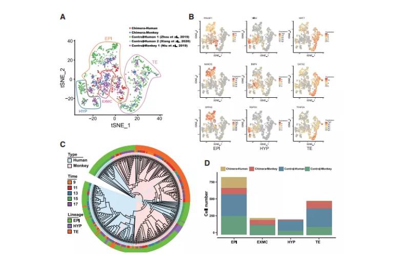 圖1 人猴嵌合胚胎的單細(xì)胞轉(zhuǎn)錄圖譜