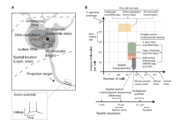 單細(xì)胞測(cè)序正在改變生物學(xué)的許多領(lǐng)域,其影響可能在神經(jīng)科學(xué)方面尤其深刻。腦細(xì)胞類(lèi)型的多樣性,以及在整個(gè)神經(jīng)元生命周期中細(xì)胞身份和依賴(lài)經(jīng)驗(yàn)的可塑性的復(fù)雜調(diào)節(jié),使得單細(xì)胞分析對(duì)于理解大腦回路至關(guān)重要。