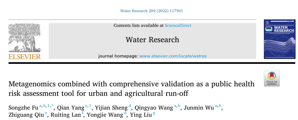 2021年12月4日,大連海洋大學(xué)海洋科學(xué)與環(huán)境學(xué)院在JCR Q1區(qū)期刊《Water Research》上發(fā)表了題為“Metagenomics combined with comprehensive validation as a public health risk assessment tool for urban and agricultural run-off”的研究論文,該論文提出了一個由病原體篩選、病原體基因分型和風(fēng)險評估三個階段組成的公共健康風(fēng)險評估流程:1)運(yùn)用宏基因組測序、微流控芯片和qPCR對病原體進(jìn)行篩選,2)多位點(diǎn)序列分型(MLST)或常規(guī)PCR進(jìn)行病原菌分離和基因分型;3)對宏基因組數(shù)據(jù)的毒力基因進(jìn)行致病性評估。