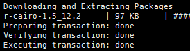 可以在R的交互界面上用library(Cairo)看下是否裝成功。