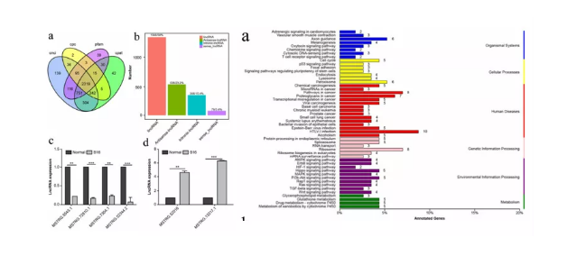 1. miRNA、lncRNA和circRNA鑒定和差異分析:鑒定出了206種和183種不同表達(dá)的miRNA, 600種和800種不同表達(dá)的lncRNA,以及50種和54種不同表達(dá)的circRNA。