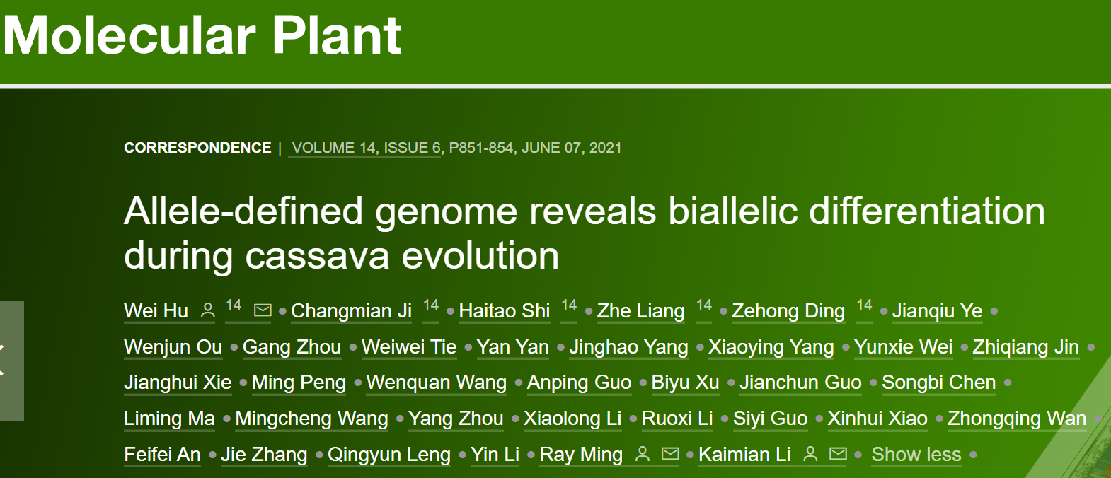 本研究首先通過PacBio平臺(tái)構(gòu)建嵌合版木薯基因組,ContigN50=1.1 Mb,并經(jīng)過BUSCO評(píng)估、LAI評(píng)估、高密度遺傳圖譜等多種評(píng)估方式,表明了本次構(gòu)建了一個(gè)參考級(jí)的高質(zhì)量基因組。并基于具有“冗余”特征的基因組,進(jìn)一步結(jié)合Hi-C互作信號(hào),將二倍體兩套的基因組進(jìn)行拆分,最終獲得具有18對(duì)同源染色體的雙單倍型基因組。前期研究結(jié)合本次同源對(duì)基因組的差異比較,進(jìn)一步說明了同源染色體之間不同遺傳位點(diǎn)的組合對(duì)生物表型有重要影響。本研究深化了對(duì)木薯雙等位基因變異遺傳基礎(chǔ)的理解,有助于探索雙等位基因的分化和表達(dá)優(yōu)勢(shì)及其潛在的進(jìn)化驅(qū)動(dòng)力,為木薯改良的戰(zhàn)略性開發(fā)提供了可能。這些基因組資源將為創(chuàng)新木薯和其他高雜合作物的育種策略提供新的見解。