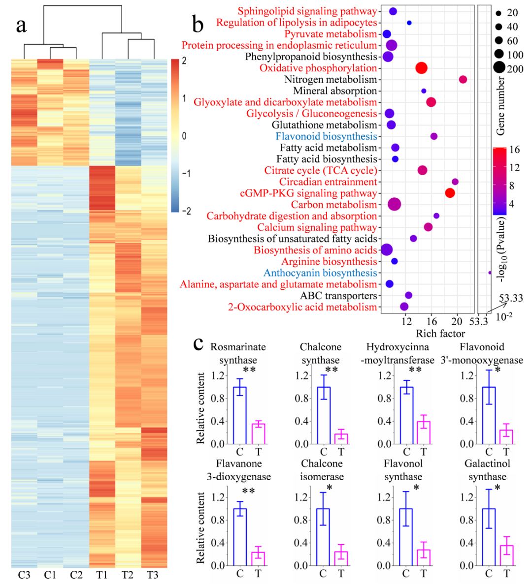 3、四環(huán)素脅迫下根中類黃酮代謝基因下調(diào)