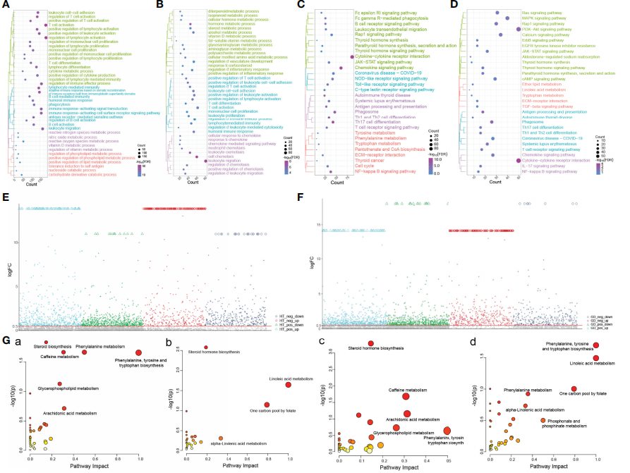 圖2?HT和GD中失調(diào)的基因表達(dá)與異常的免疫級(jí)聯(lián)和代謝信號(hào)傳導(dǎo)有關(guān)