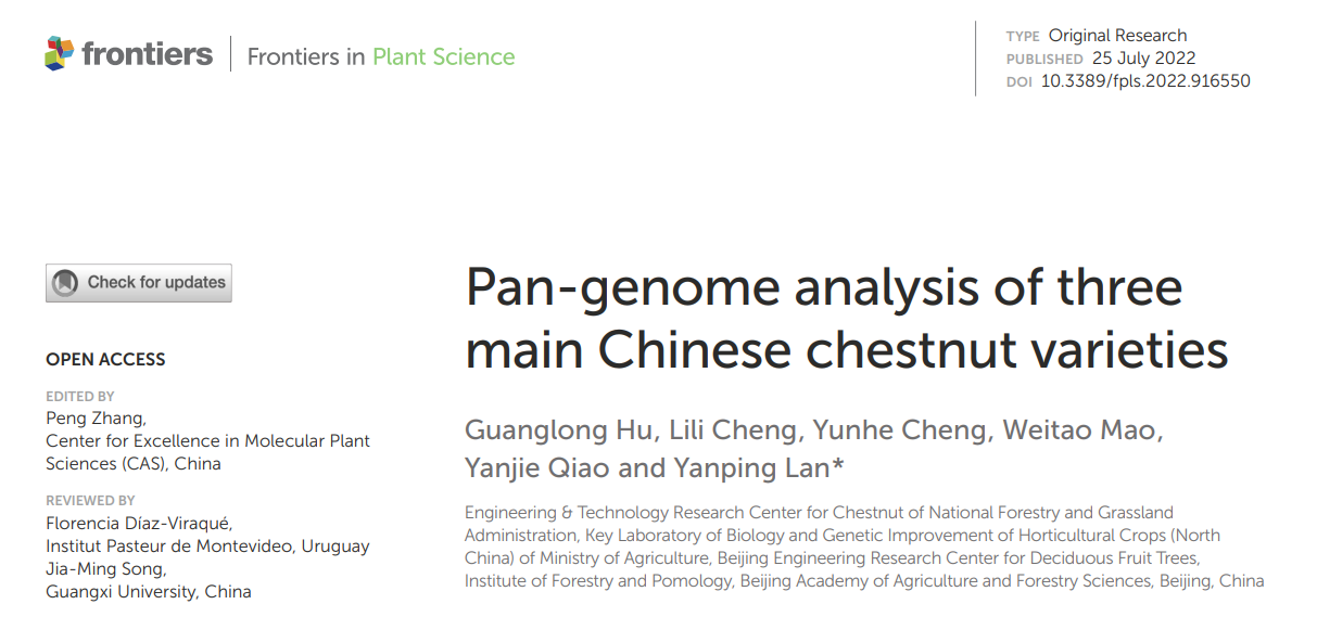 近日,北京市農(nóng)林科學(xué)院林業(yè)果樹(shù)研究所蘭彥平團(tuán)隊(duì)在《Frontiers In Plant Science》在線(xiàn)發(fā)表了題為“Pan-genome analysis of three main Chinese chestnut varieties”的研究論文。百邁客有幸為該研究提供板栗基因組測(cè)序組裝工作。