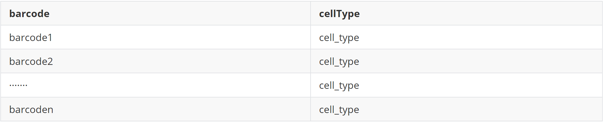 names(cellType) =?c(‘barcode’, ‘cell_type’)