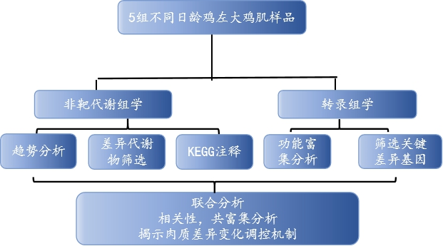 Integration analysis of metabolome and transcriptome profiles revealed the?age-dependent dynamic change in chicken meat.Food Research International (IF=6.475) 2022年6月代謝組和轉(zhuǎn)錄組的整合分析揭示不同生長(zhǎng)發(fā)育時(shí)期雞的肉質(zhì)依賴性動(dòng)態(tài)變化研究方案