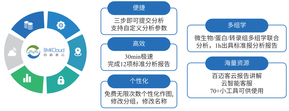 百邁客云(BMKCloud)無門檻,簡單易上手,可快速完成微生物多樣性、宏基因組、轉(zhuǎn)錄組、代謝組等組學(xué)標(biāo)準(zhǔn)分析,另外還可免費(fèi)進(jìn)行多組學(xué)聯(lián)合分析,一鍵化操作,為您節(jié)約寶貴科研時間。