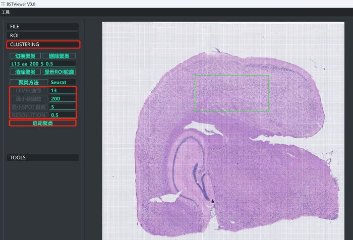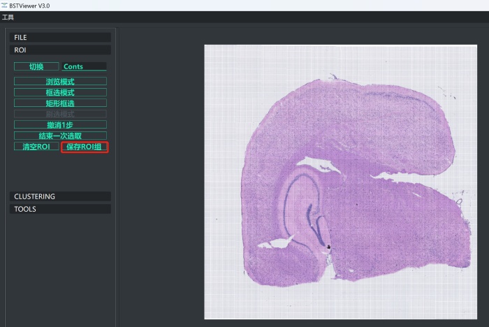 3)導(dǎo)入HE圖片和矩陣文件。導(dǎo)入的HE圖片可以通過(guò)鼠標(biāo)左鍵進(jìn)行移動(dòng),滾輪可對(duì)圖片進(jìn)行縮放;