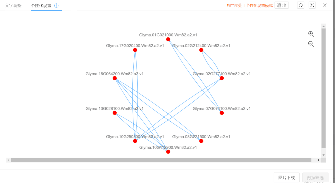 2、支持篩選重點(diǎn)基因之間的子網(wǎng)絡(luò)和相關(guān)網(wǎng)絡(luò)