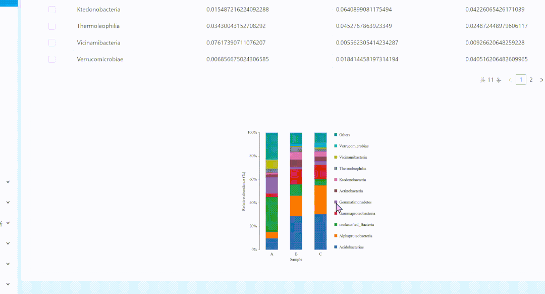 百邁客微生物多樣性(擴(kuò)增子)線上分析共擁有20+種基本分析,40+種個(gè)性化分析;宏基因組線上分析共擁有20+種基本分析,30+種個(gè)性化分析。在這里,展示3款交互式個(gè)性化: