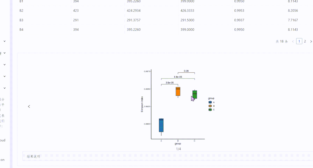 Alpha多樣性用來(lái)反映單個(gè)樣本的物種豐富度和多樣性,可同時(shí)做組間差異分析,支持全圖自定義、線圖/小提琴圖切換、差異p值或*的體現(xiàn)等。