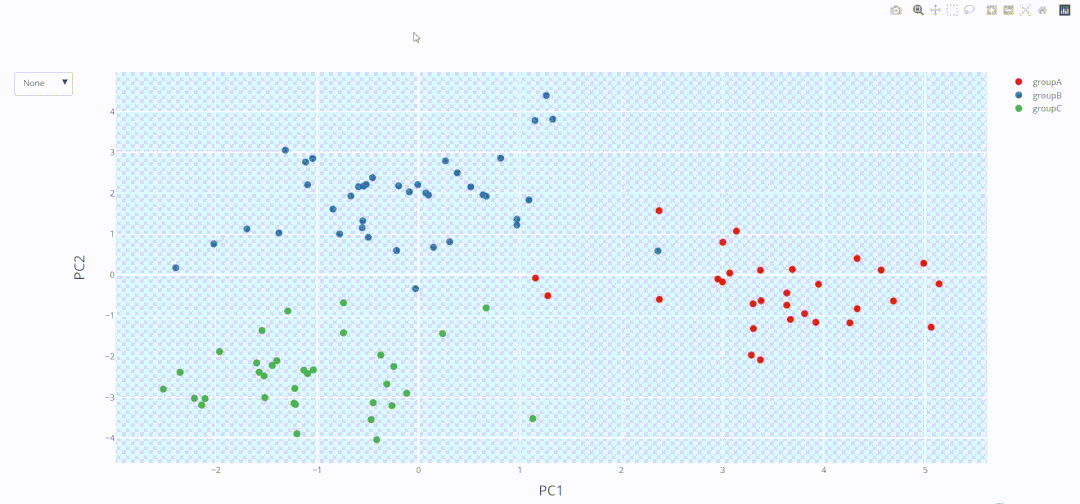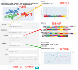 除常用的交互功能外,還支持切換為氣泡圖、曼哈頓圖、3D散點(diǎn)圖,組別支持置信橢圓繪制。