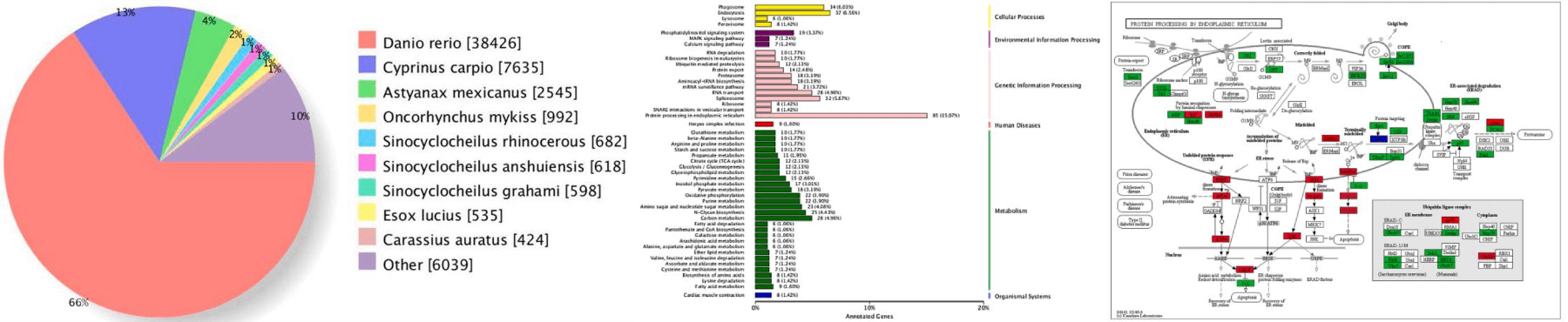 鯉魚是全球養(yǎng)殖最廣泛的魚類。隨著養(yǎng)殖密度的增加,鯉魚養(yǎng)殖面臨著嚴(yán)峻的環(huán)境壓力。氨是一個(gè)重要的環(huán)境脅迫因素,對(duì)繁殖過程產(chǎn)生重大影響。對(duì)魚類的毒性作用通常被認(rèn)為是由NH3引起的,NH3是高度脂溶性的,由于氨在生物體內(nèi)積累,它很容易通過細(xì)胞膜,疾病在鰓、腎和肝組織中,降低免疫力,阻礙生長,甚至死亡。然而,關(guān)于致病性和應(yīng)激的分子機(jī)制的基本基因組信息尚不充分。