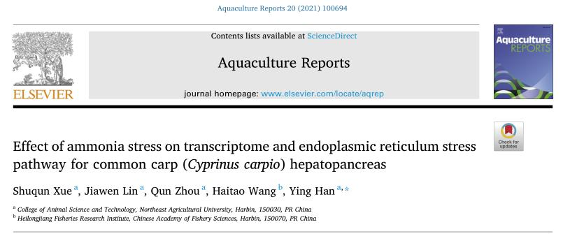 英文標(biāo)題:Effect of ammonia stress on transcriptome and endoplasmic reticulum stress pathway for common carp (Cyprinus carpio) hepatopancreas