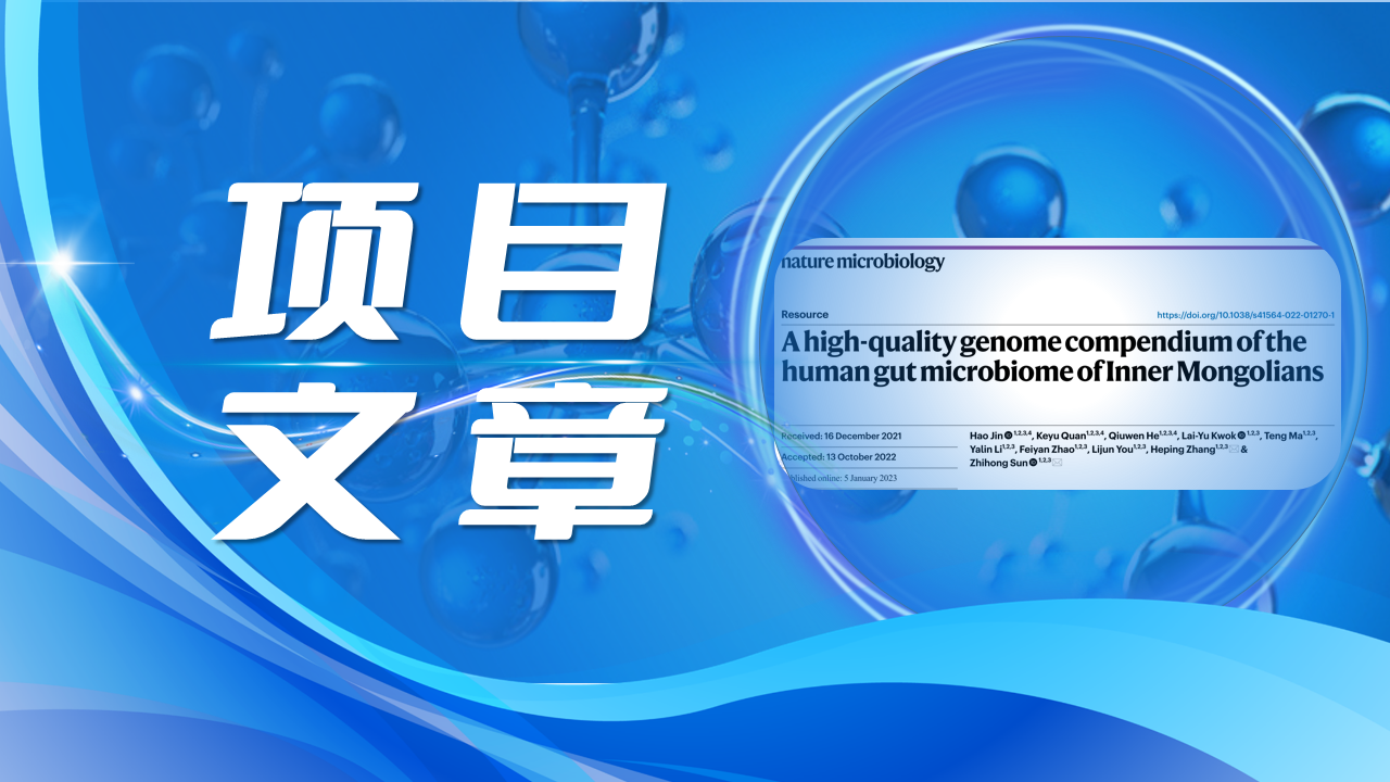 2023年1月5日,內(nèi)蒙古農(nóng)學(xué)大學(xué)張和平教授和孫志宏研究員團(tuán)隊(duì)在微生物領(lǐng)域國(guó)際期刊《Nature Microbiology》(IF:30.964)上發(fā)表了題為“A high-quality genome compendium of the human gut microbiome of Inner Mongolians(“內(nèi)蒙古人腸道菌群的高質(zhì)量基因組簡(jiǎn)編”)的研究論文。該研究基于一項(xiàng)益生菌(Probio-M8)發(fā)酵乳人群干預(yù)實(shí)驗(yàn),采用混合長(zhǎng)讀(ONT)和短讀HiSeq測(cè)序來(lái)表征60名內(nèi)蒙古人的糞便菌群,基于分箱的宏基因組分析策略和方法,構(gòu)建了內(nèi)蒙古人腸道高質(zhì)量基因組數(shù)據(jù)庫(kù)(IMGG)。百邁客為該研究提供了ONT宏基因組測(cè)序服務(wù)。