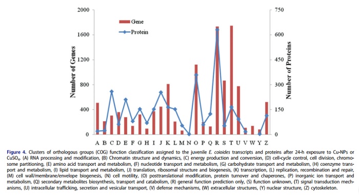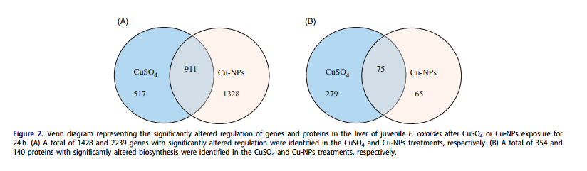 Epinephelus coioides(橙斑石斑魚),一種原生型雌雄同體的海洋魚類,在中國廣泛流行,因為其優(yōu)良的肉質(zhì)使其具有很高的商業(yè)價值。目前,E. coioides主要在漂浮網(wǎng)箱養(yǎng)殖,在自然環(huán)境中很容易就可以受環(huán)境污染影響。本研究結合生理分析,轉錄組和蛋白組分析研究納米銅或硫酸銅暴露下石斑魚體內(nèi)蛋白及基因的差異變化。