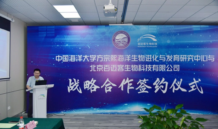 隨后由中國海洋大學(xué)董波教授發(fā)表致辭,董波教授介紹了中國海洋大學(xué)方宗熙海洋生物進(jìn)化與發(fā)育研究中心近年海洋模式動(dòng)物研究進(jìn)展及重點(diǎn)科研攻關(guān)成果,同時(shí)表示:期望依托雙方的優(yōu)質(zhì)資源和創(chuàng)新性的技術(shù)經(jīng)驗(yàn)實(shí)現(xiàn)價(jià)值共享,并通過持續(xù)的加強(qiáng)交流合作、協(xié)同發(fā)展。