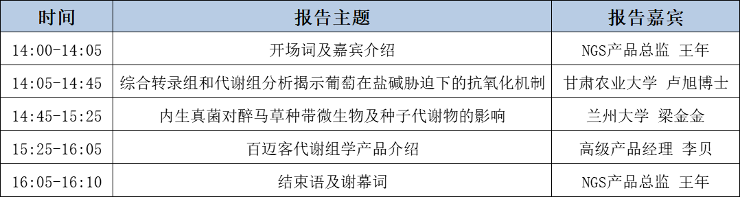 2023年9月8日,百邁客生物誠邀質(zhì)譜技術(shù)研究領(lǐng)域的優(yōu)秀博士舉辦“質(zhì)譜技術(shù)引領(lǐng)多組學(xué)新時代”博士沙龍研討會。本次研討會由百邁客農(nóng)學(xué)NGS市場部副總監(jiān)王年主持,邀請了甘肅農(nóng)業(yè)大學(xué)園藝學(xué)院盧旭博士和蘭州大學(xué)草地農(nóng)業(yè)科技學(xué)院梁金金,分別以《綜合轉(zhuǎn)錄組和代謝組分析揭示葡萄在鹽堿脅迫下的抗氧化機制》和《內(nèi)生真菌對醉馬草種帶微生物及種子代謝物的影響》為主題,共同探討質(zhì)譜多組學(xué)技術(shù)在農(nóng)學(xué)研究中的應(yīng)用。