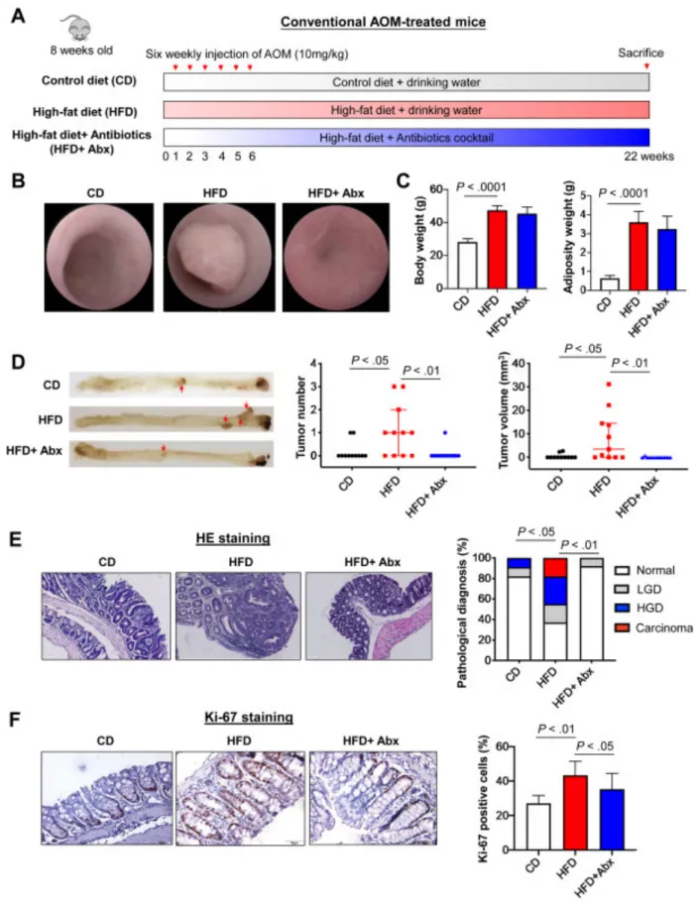 圖1-在AOM模型中,HFD促進了依賴于腸道微生物群的結(jié)直腸癌的發(fā)展