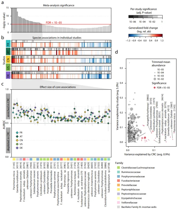 圖2-宏基因組分析確定與結(jié)直腸癌密切相關的核心腸道微生物