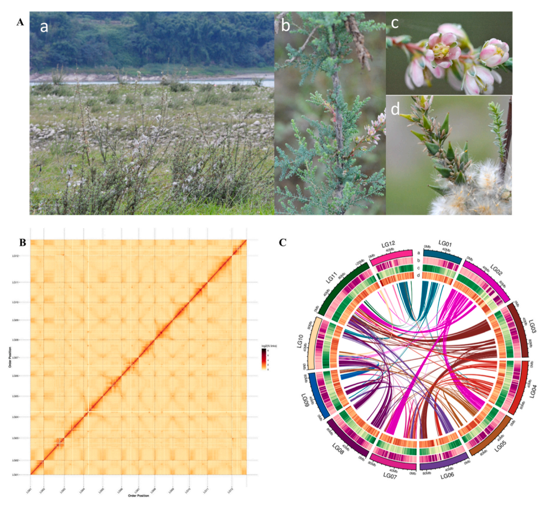 近日,由西南大學、重慶市林業(yè)科學研究院、重慶城市管理職業(yè)學院團隊合作完成的項目成果《?Chromosome-scale?genome?assembly?clarifies?the?mechanism?of?flooding?tolerance?and?evolutionary?history?of?Myricaria?laxiflora》在《科學引文索引》(SCI)一區(qū)TOP期刊上“Industrial?Crops?&?Products”發(fā)表。該研究報道了水柏枝屬染色體水平基因組,并從形態(tài)學、生理學、比較基因組等多個角度揭示了疏花水柏枝在淹沒的環(huán)境適應性和遺傳機制,為檉柳科物種種質資源的保護和資源的開發(fā)利用提供了指導。