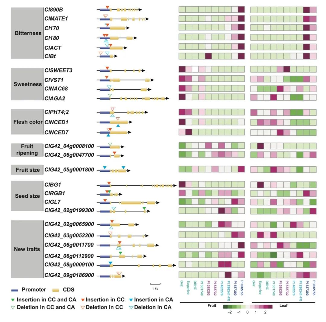 圖3-西瓜屬重要性狀基因結(jié)構(gòu)變異圖譜