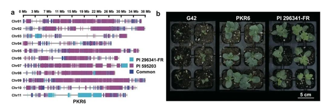 圖4-遠(yuǎn)緣雜交創(chuàng)制優(yōu)良抗病種質(zhì)PKR6基因組及枯萎病抗性表型
