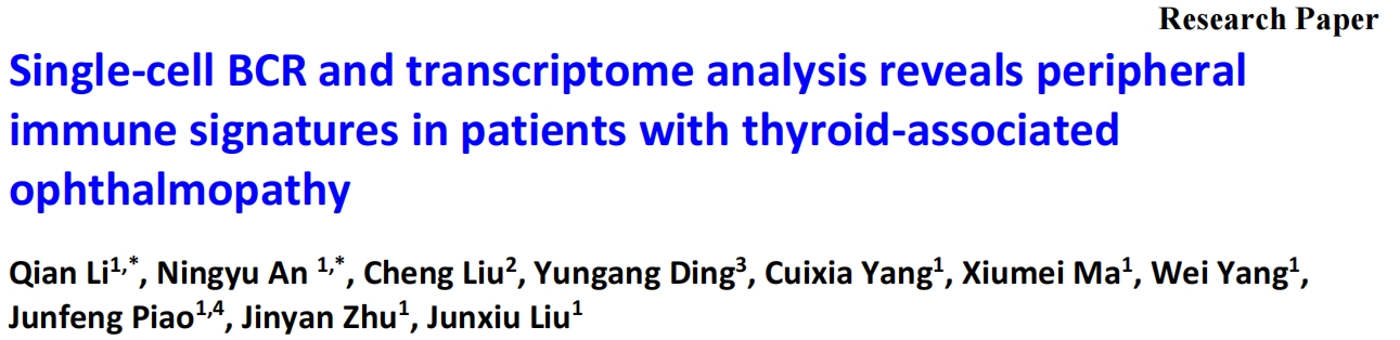 文章標(biāo)題:Single-cell BCR and transcriptome analysis reveals peripheral immune signatures in patients with thyroid-associated ophthalmopathy