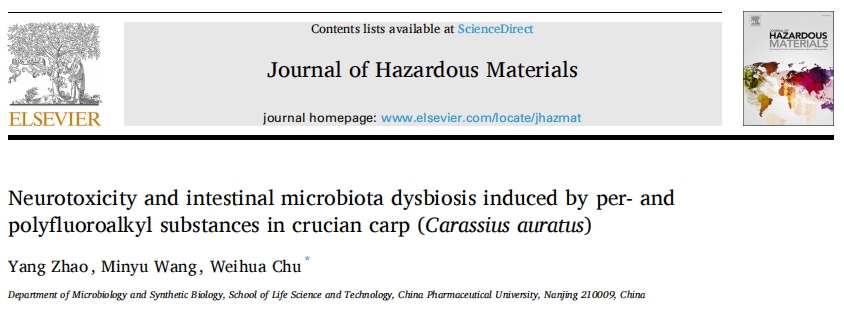 8月22日,中國藥科大學儲衛(wèi)華團隊以淡水水生動物鯽魚為模型對全氟和多氟烷基物質(zhì)(PFAS)的神經(jīng)毒性和菌群紊亂開展了深入研究,研究成果以題為“Neurotoxicity and intestinal microbiota dysbiosis induced by per- and polyfluoroalkyl substances in crucian carp (Carassius auratus)”發(fā)表在Journal of Hazardous Materials上。