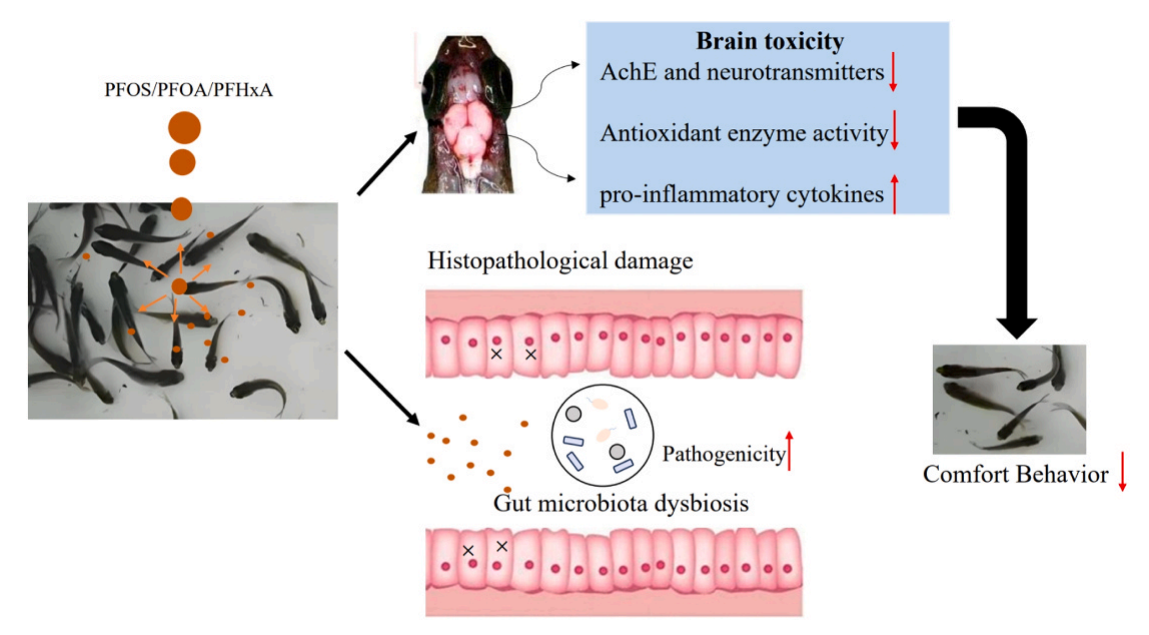 該實驗主要研究了PFAS對鯽魚神經(jīng)系統(tǒng)和腸道菌群的毒性。研究結(jié)果表明,環(huán)境相關(guān)濃度的PFAS可以引起鯽魚腸道微生物群的破壞,并進一步引起大腦神經(jīng)化學和行為模式的變化。這些變化可能與大腦的氧化損傷以及應激和炎癥相關(guān)基因的表達有關(guān)。這些結(jié)果為評估PFAS污染物在水生環(huán)境濃度下的毒性提供了見解。
