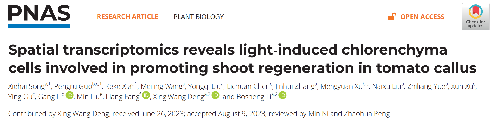 中文題目:空間轉(zhuǎn)錄組測序揭示番茄愈傷組織芽再生的分子機(jī)制