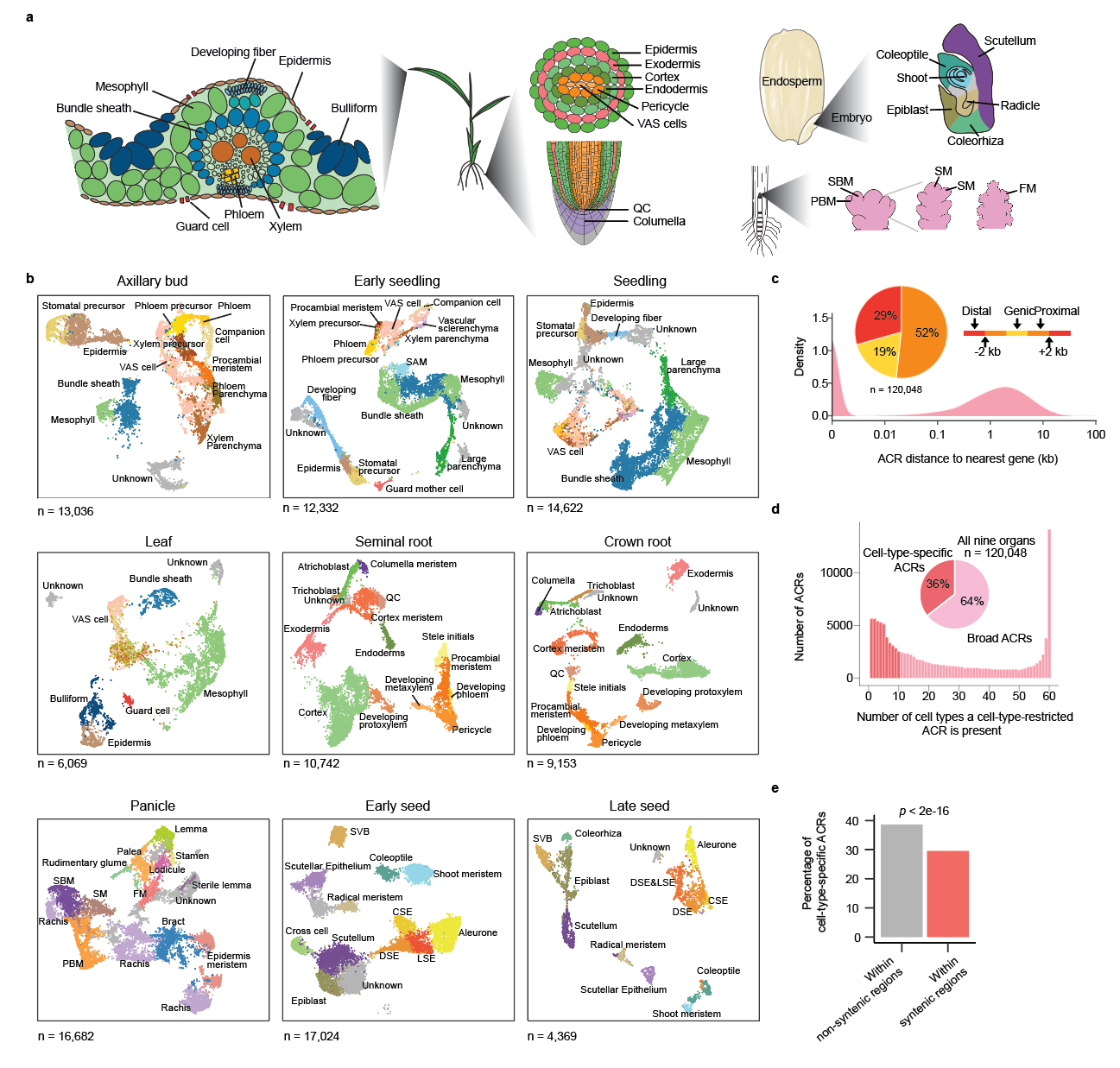 單細胞ATAC測序:水稻:葉、根、種子、穗等9個器官;發(fā)育階段:葉原基(P3-P6)、成熟葉(V4階段);其他物種:玉米、高粱、黍、Browntop Signalgrass