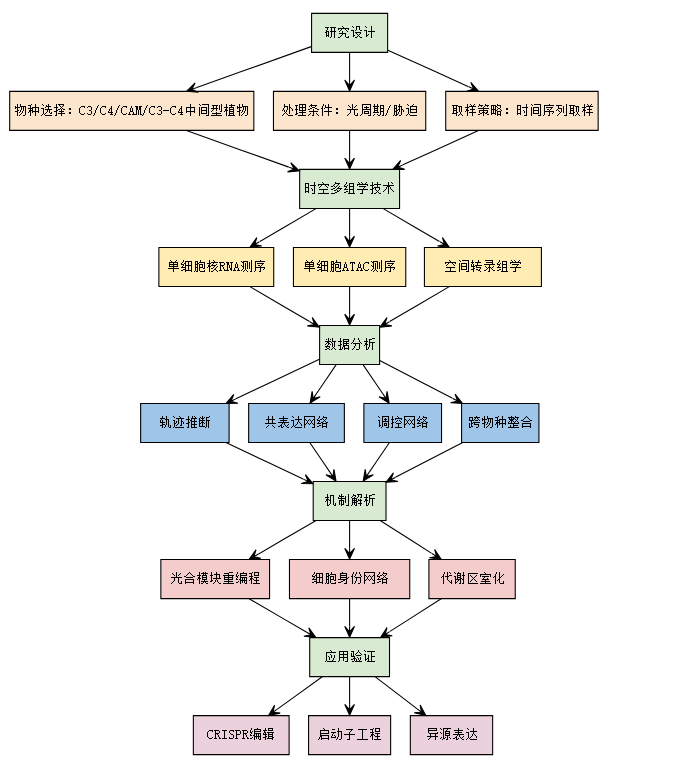 根據(jù)上述文獻,可以總結(jié)出應用時空組學解析植物光合作用機制常用思路的技術(shù)路線圖。