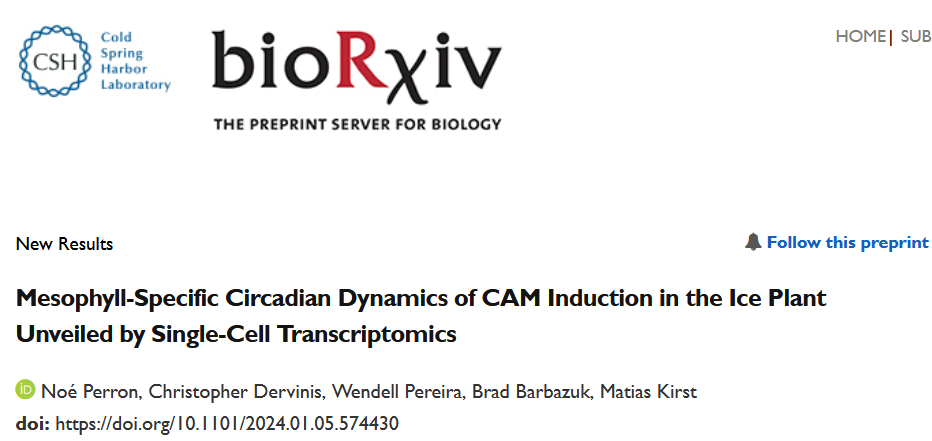 ② 該研究通過單核RNA測序(snRNA-seq),結(jié)合一個全新高質(zhì)量組裝和注釋的基因組,對冰草從C3到CAM的環(huán)境誘導轉(zhuǎn)變進行了表征,以識別其潛在的調(diào)控因子。針對在黎明和黃昏采集的冰草葉片在C3和CAM切換過程中單核RNA測序數(shù)據(jù)的分析,揭示了在CAM誘導初期葉肉細胞中存在顯著的轉(zhuǎn)錄變化。