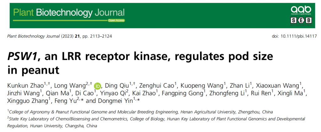PSW1編碼一個(gè)LRR – RLK蛋白激酶,等位基因PSW1HapII賦予了PSW1更高的表達(dá)水平和對(duì)其輔助受體AhBAK1更強(qiáng)的親和力,以上調(diào)PSW1 – based途徑,調(diào)節(jié)花生莢果大小。此外,PSW1HapII的過(guò)表達(dá)增加了多種植物的種子/果實(shí)大小。