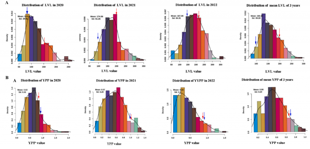實(shí)驗(yàn)方法:Xin24×Yushu10雜交中選擇212個(gè)F1材料: 特異性位點(diǎn)擴(kuò)增片段測(cè)序(SLAF-seq);遺傳圖譜構(gòu)建;數(shù)量性狀位點(diǎn)(QTL)定位;GWAS關(guān)聯(lián)(F1群體)