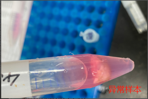 7)凍融組織: 組織凍存后,一旦凍融,核酸降解概率大于 80%,幾乎不可能提取成功,此類(lèi)組織不建議送樣。請(qǐng)各位老師送樣前注意組織保存狀態(tài), 確保組織未發(fā)生過(guò)凍融情況