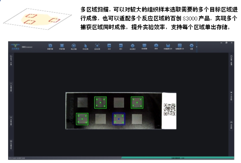 50S內(nèi)可完成8mm*8mm 20X掃描,支持掃描25mm*60mm,原片明場及原片熒光成像