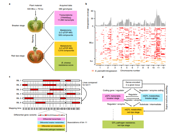 利用野生番茄漸滲系闡明轉錄組和代謝組變異對果實性狀和病原菌響應的遺傳基礎的潛在影響