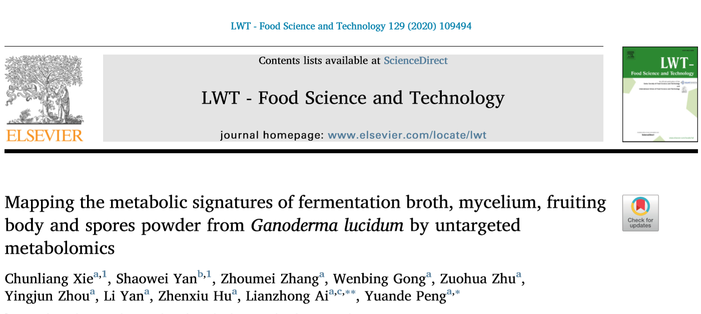 通過非靶向代謝組學分析靈芝的發(fā)酵液,菌絲體,子實體和孢子粉的代謝特征