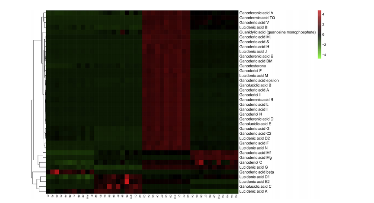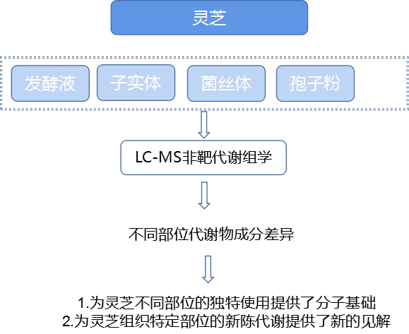 研究結果:這項研究運用靈芝的不同部分,通過非靶向代謝組學研究靈芝不同部位的功能和藥效。根據(jù)非靶向代謝組學的結果,得出子實體可以特別用作抗腫瘤和抗艾滋病藥物;孢子粉可用于開發(fā)治療肝病和糖尿病的藥物;靈芝的四個部分可用于抗氧化劑領域。本研究為靈芝的質量評價和綜合利用提供了理論依據(jù)。