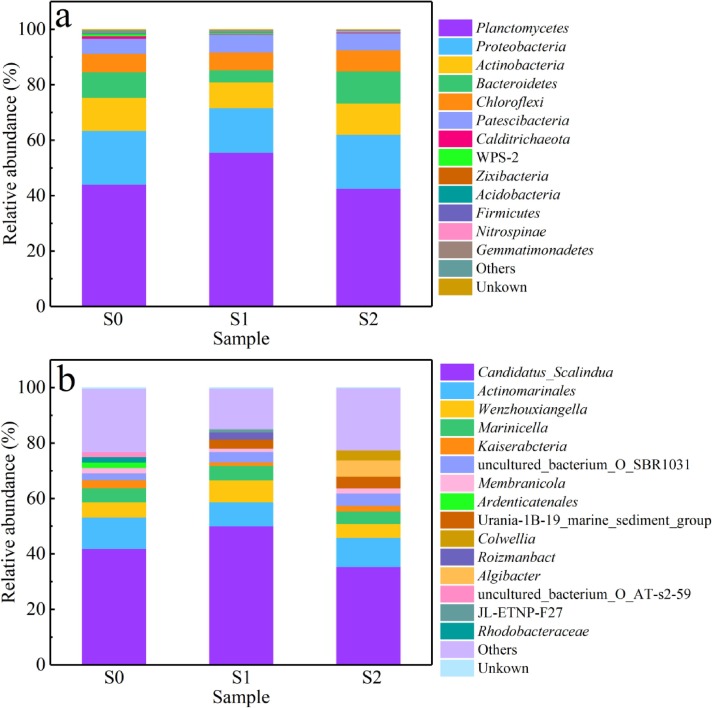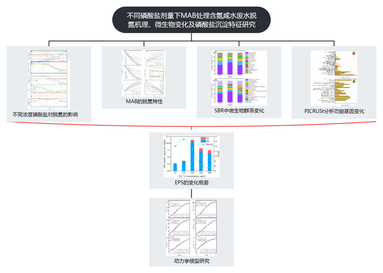 本研究首次探索了含氮含鹽廢水中不同磷酸鹽劑量下MAB的脫氮工藝。MAB的活性在含低濃度磷酸鹽時(0-30 mg/L)增強,高濃度時(160~400 mg/L),NH4+和NO2-的去除率下降,MAB相對豐度下降了15.4%。此外,沉積物的存在迫使微生物產(chǎn)生更多的EPS以保護自己免受損害。通過低濃度磷酸鹽促進MAB的厭氧氨氧化過程或對含氮含鹽廢水脫氮處理有重大意義,SBR中磷酸鈣鎂沉淀的形成,或許為磷元素的回收提供了思路。