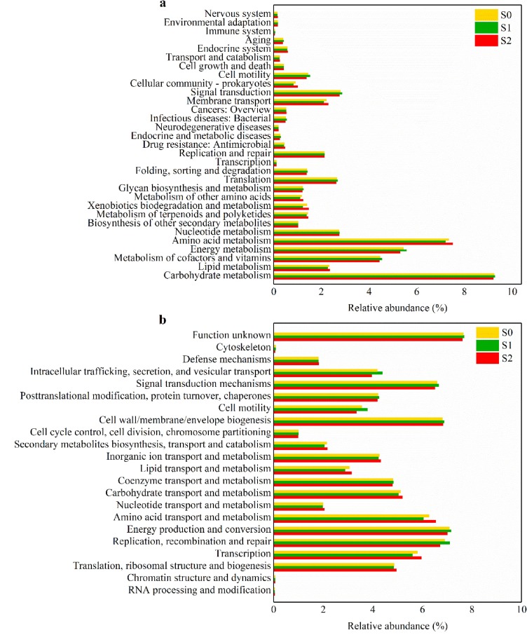 對共生微生物如何影響根際微生物類群以協(xié)助苜蓿抵御Cd脅迫提供了新的認識,根際群落成員間的相互作用或接種后群落組合的動態(tài)是重要因素。與單一接種相比,根瘤菌和AMF聯(lián)合接種對苜??笴d脅迫的綜合效應最大。根瘤菌和AMF共接種對主要細菌類群產(chǎn)生強烈影響,主要通過幫助植物從根際吸收養(yǎng)分和減少植物光合作用產(chǎn)生的C分配到土壤中來提高苜蓿對Cd脅迫的抗性。這些研究結果對進一步提高植物的抗逆性,保證牧草和作物的生產(chǎn)具有重要意義。