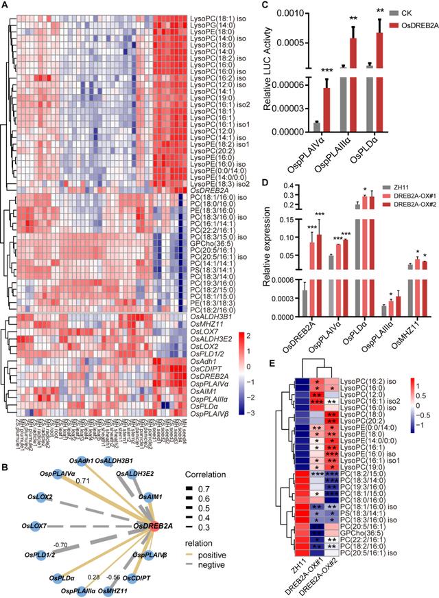 最后,為了進一步準確了解成熟果實中轉錄水平與代謝物變化之間的關系,作者進行了DEGs與DAMs之間的相關分析,其中,變化趨勢相同的DEGs和DAMs主要涉及類黃酮、酚酸類、氨基酸及其衍生物、萜類、有機酸、脂類等(圖7)。